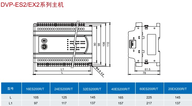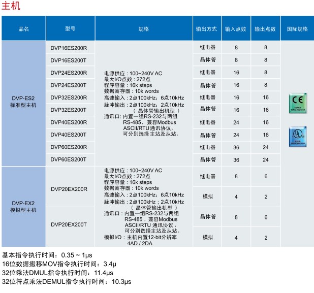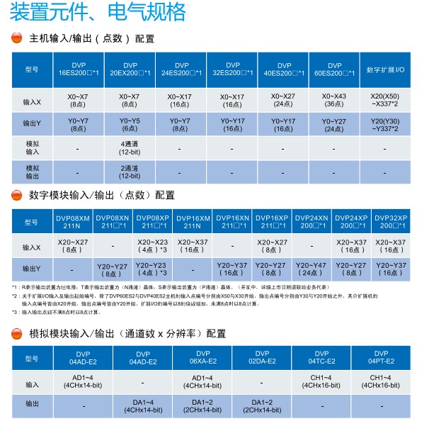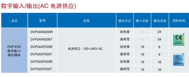 DVP16ES200T 16点主机,8DI/8DO(NPN/24Vdc/0.5A), 2路100K输入/输出,2路20K输入/输出, AC电源