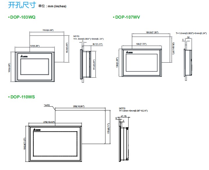 HMI DOP-B05S111 5.6" 4:3屏幕/分辨率320x234/8M Flash, COM1:RS232, COM2:RS-232/485, COM3:RS-422/485, 开孔尺寸:172.4 x 132.4