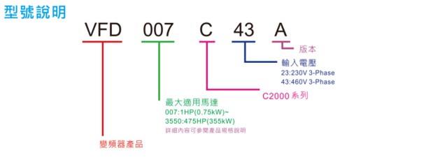 VFD-C2000 VFD015C43E 380V/3P,1.5kW,内置10k PLC,内建刹车,DC电抗选购,EMI内建,UL,CE