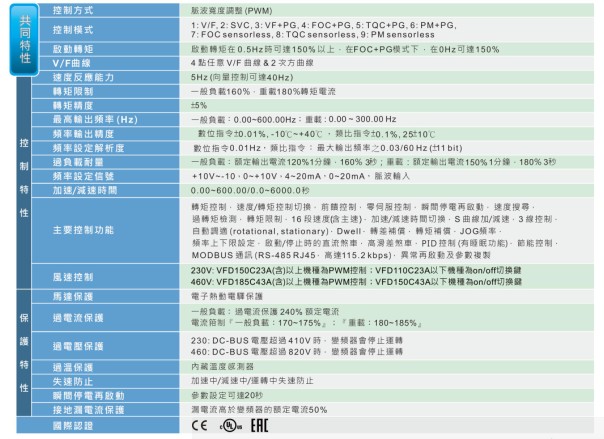 VFD-C2000 VFD185C23A 220V/3P,18.5kW,内置10k PLC,内建刹车,DC电抗选购, UL,CE