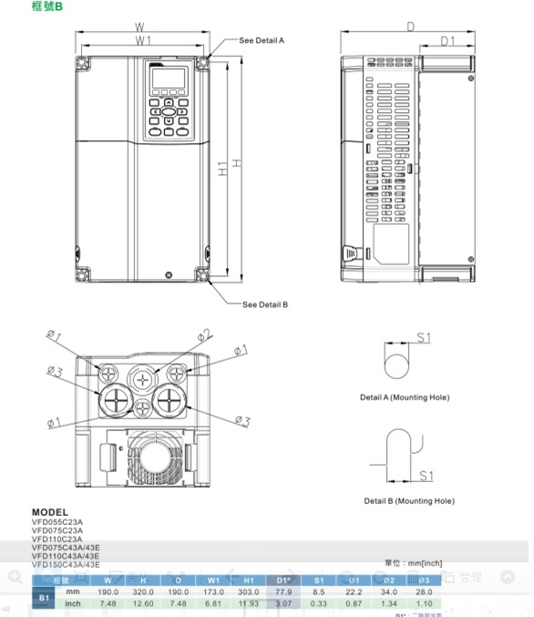 VFD-C2000 VFD750C23A 220V/3P,75kW,内置10k PLC,刹车选购,DC电抗内建, UL,CE